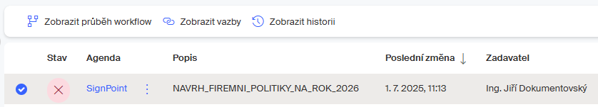 Poslední člen podpisové cesty – Archivář – má k posouzení k dispozici již i podepsané soubory a jejich podpisové doložky. Pokud usoudí, že agendu není vhodné archivovat, může ji jako celek stornovat.